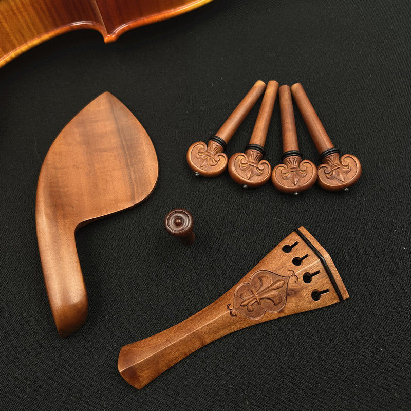 小提琴鸡翅木配件 小提琴拉弦板腮托琴轴弦轴全套 高档小提琴配件