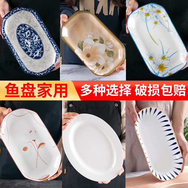 9.9清仓处理陶瓷鱼盘家用大号蒸烤菜鱼盘子长方形微波炉餐具特价