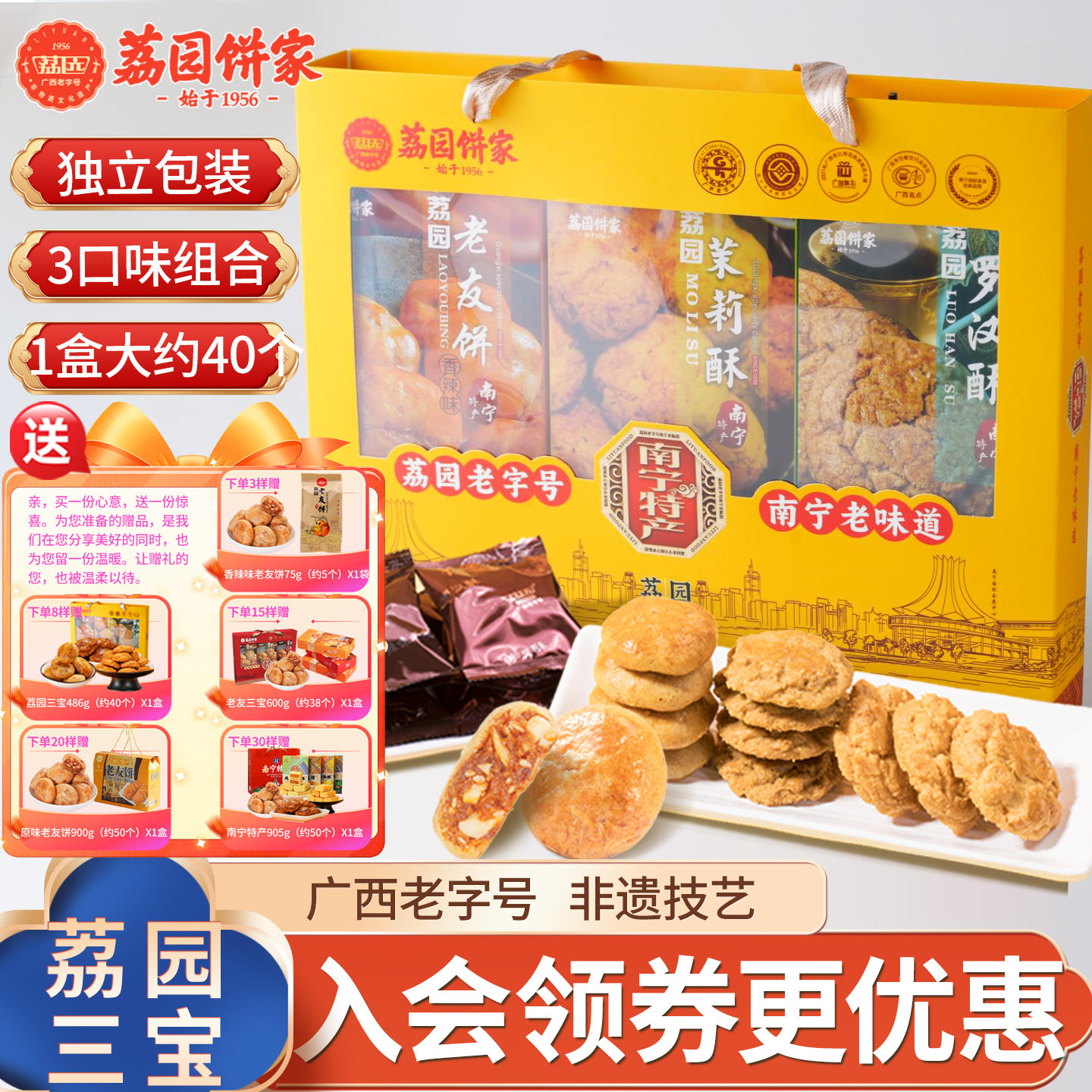荔园老友饼鸡仔饼486g广西老字号中式糕点南宁特产伴手礼大礼盒