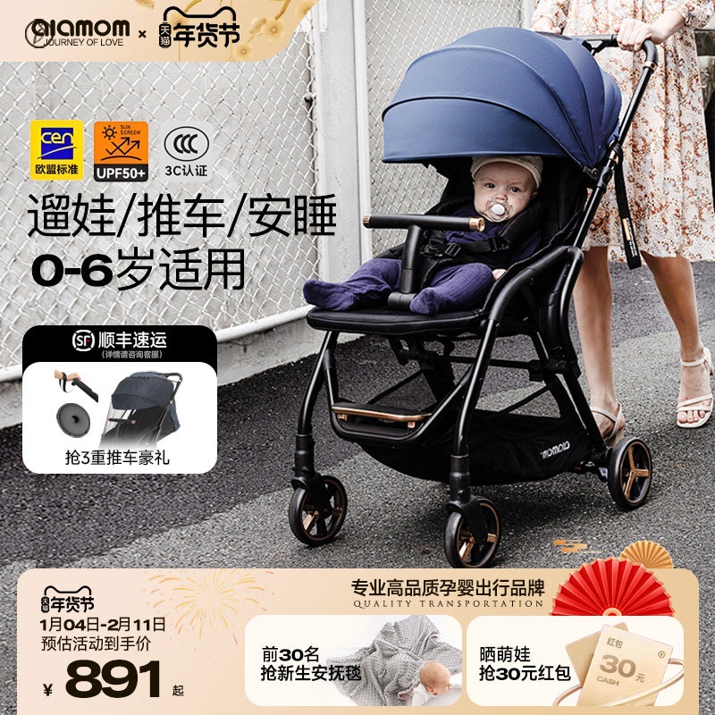 AMORHOME遛娃神器am溜娃神器婴儿推车轻便折叠婴儿车可坐可躺