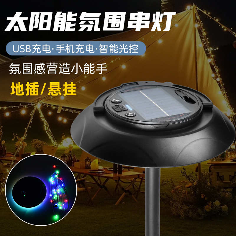 新款家用太阳能灯一托二超亮七彩灯串露营灯户外庭院灯太阳能插地