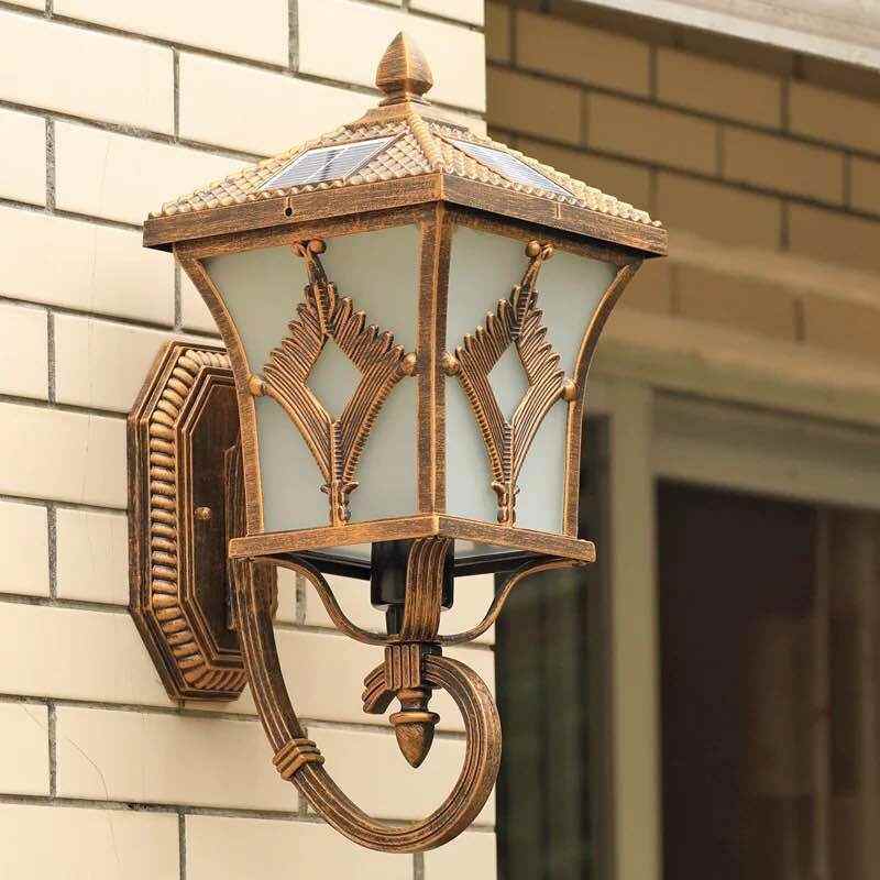 家用太阳能灯户外庭院灯天黑自动亮人体感应复古壁灯道路灯照明灯