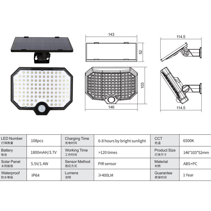 新款户外家用太阳能灯一体式防水庭院感应壁灯led遥控太阳能路灯