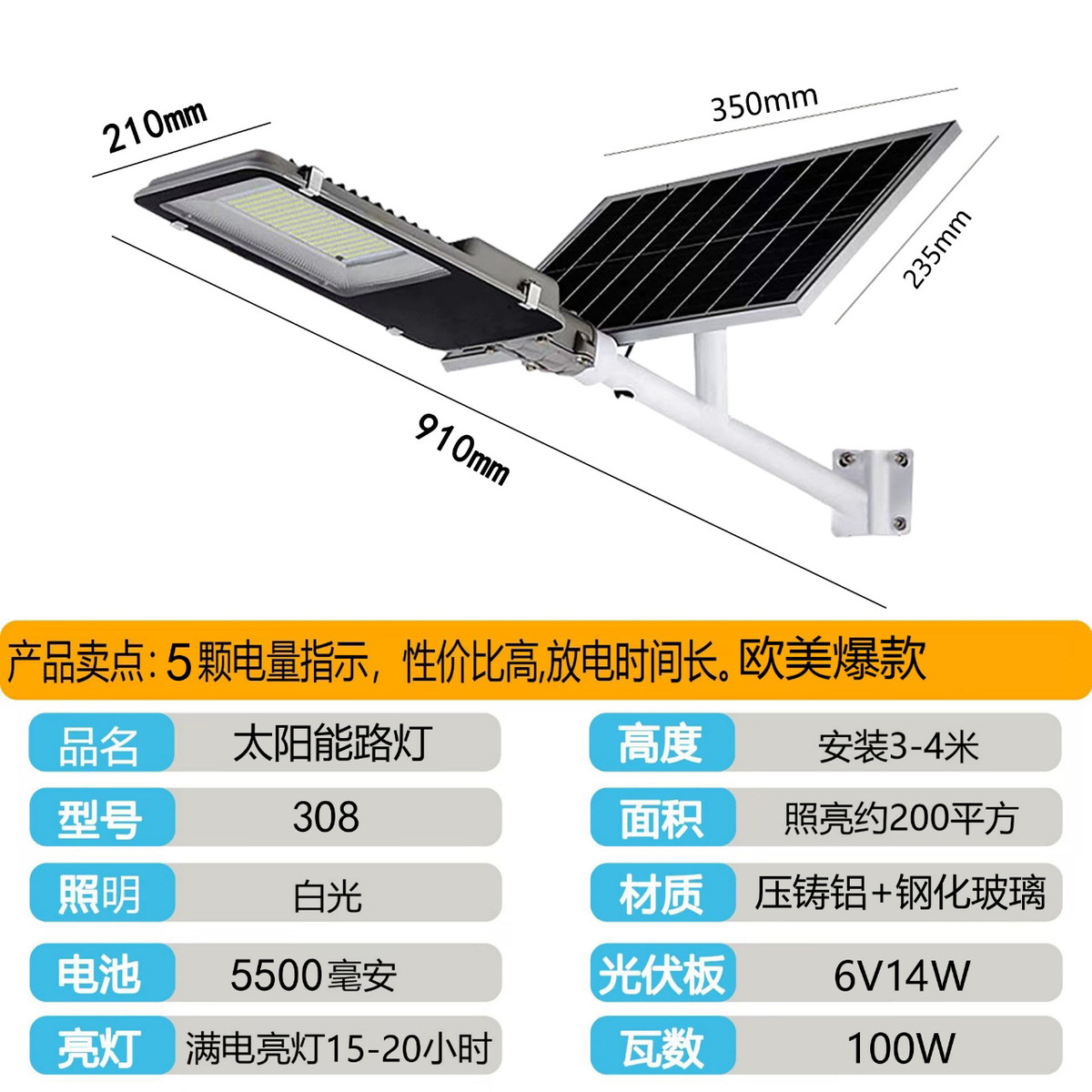 新款太阳能充电灯工厂家用太阳能灯超亮农村街道庭院大门户外路灯