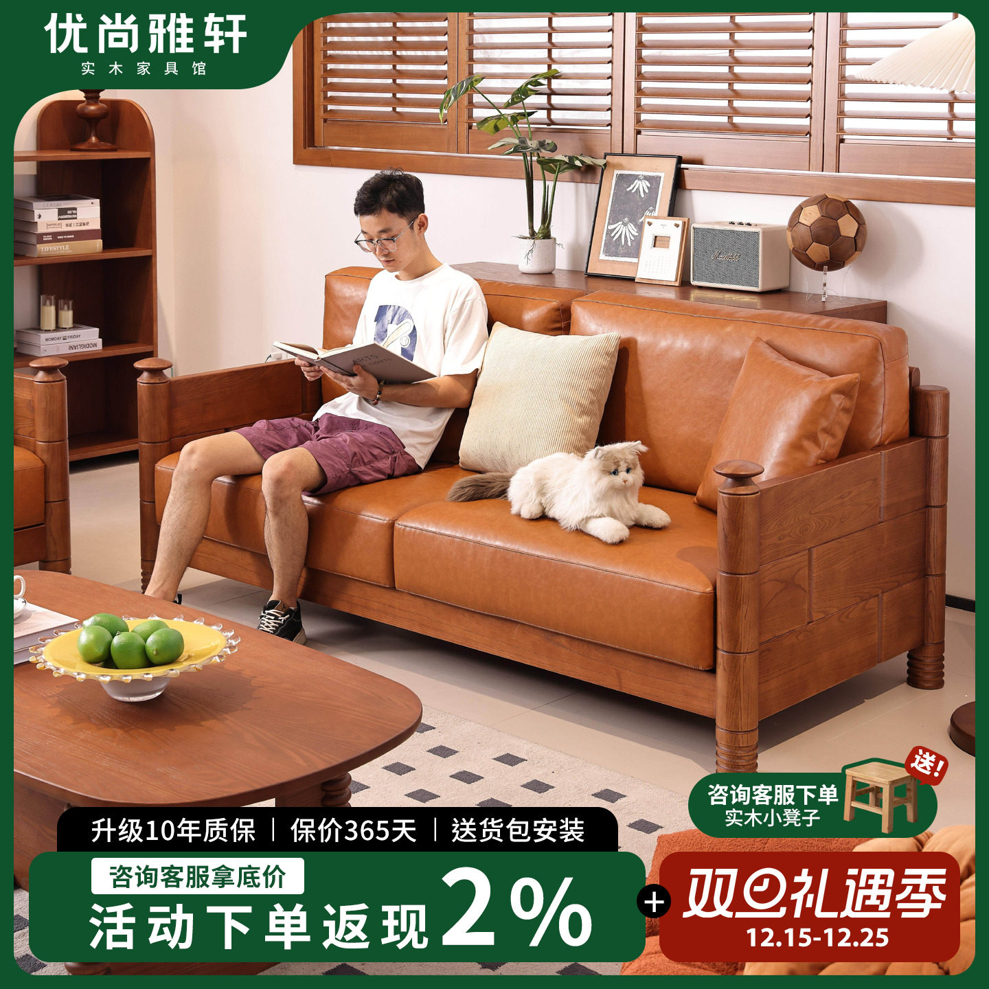 优尚雅轩白蜡木纯实木沙发中古风高档沙发客厅布艺沙发直排木沙发