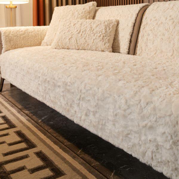 冬季沙发垫2023新款毛绒白色坐垫高档布艺沙发盖布座垫套罩巾防滑