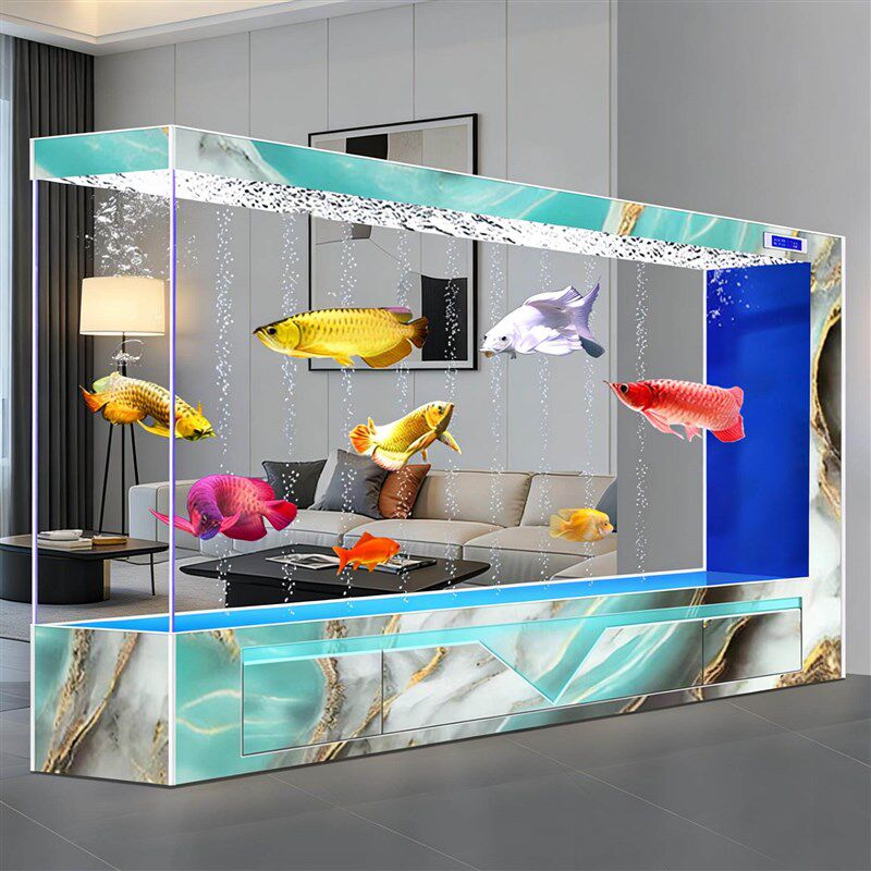 闽朋超白玻璃屏风隔断鱼缸侧部过滤免换水过滤制氧一体落地柜鱼缸