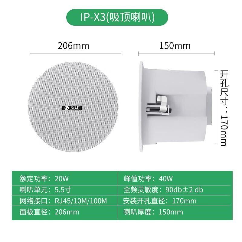 ip网络音响校园广播系统 IP-X3POE(20W网络吸顶POE供电)
