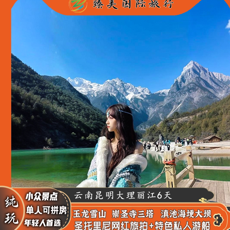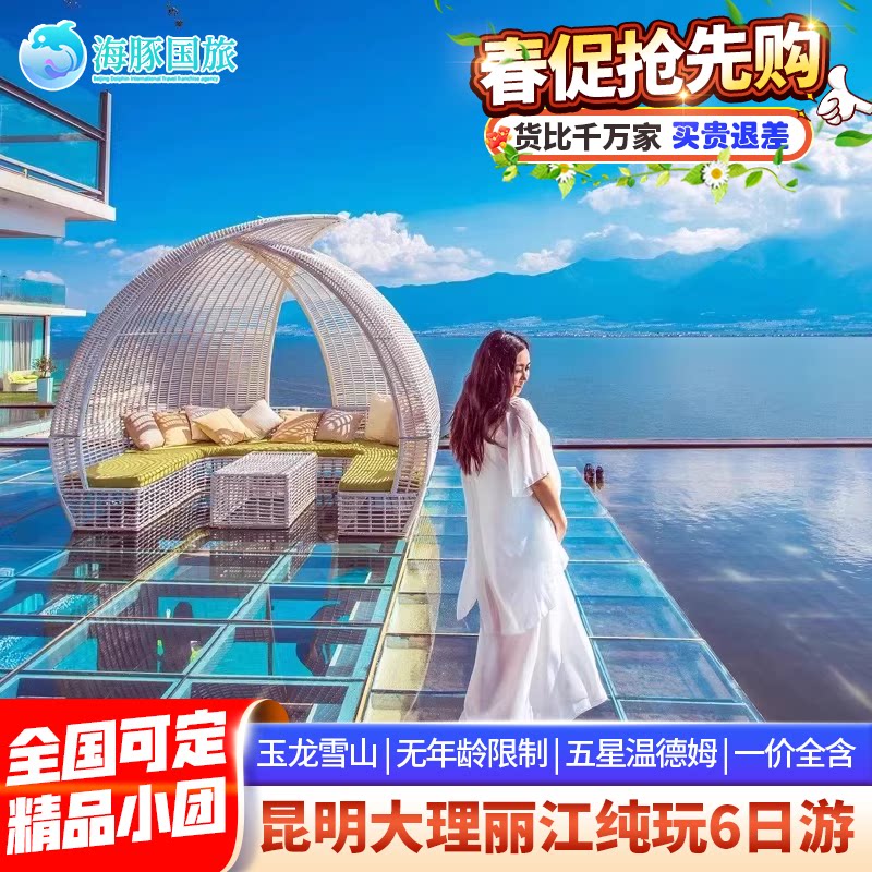 云南纯玩旅游小团0自费住5钻含机票大理丽江玉龙雪山洱海6日游
