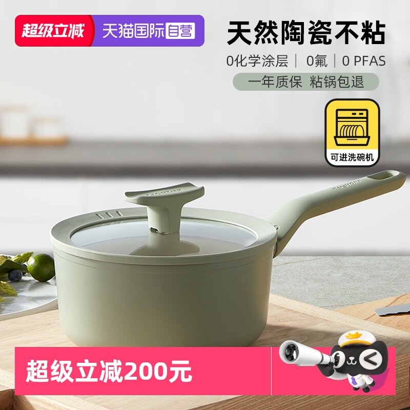 BESCO陶瓷小奶锅0氟涂层不粘锅宝宝辅食锅多功能热奶锅炖锅煮面锅