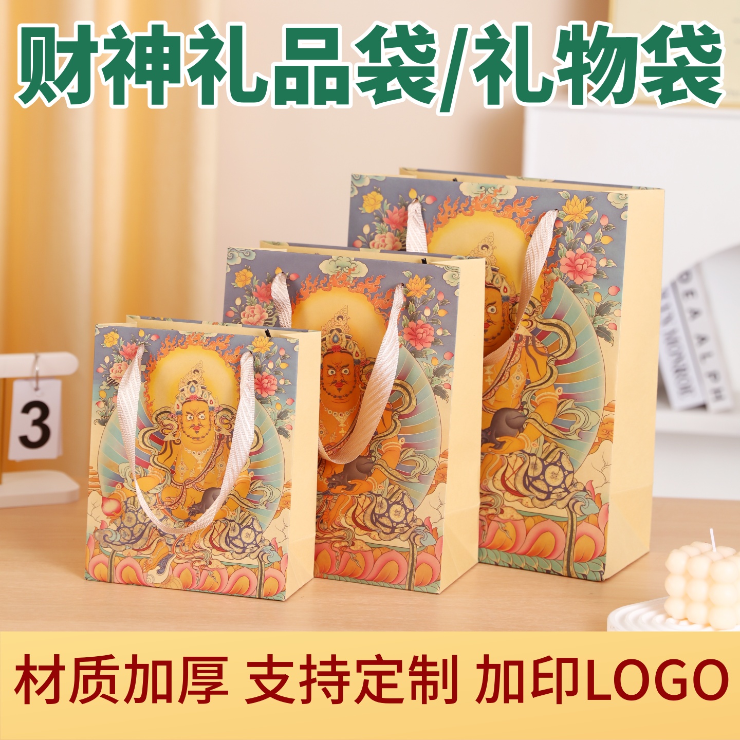 财神礼品袋手提袋定制logo新年礼袋加厚牛皮纸袋国风袋春节礼物袋