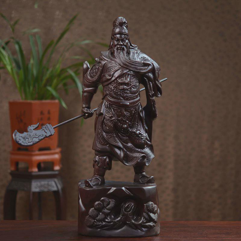 黑檀木雕刻关公像关羽横刀摆件木质客厅摆件红木工艺品武财神礼品