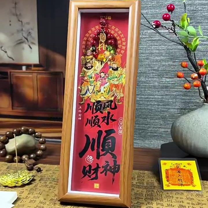 桌面摆件画框顺风顺水顺财神办公室家居客厅书桌橱柜五路财神礼品