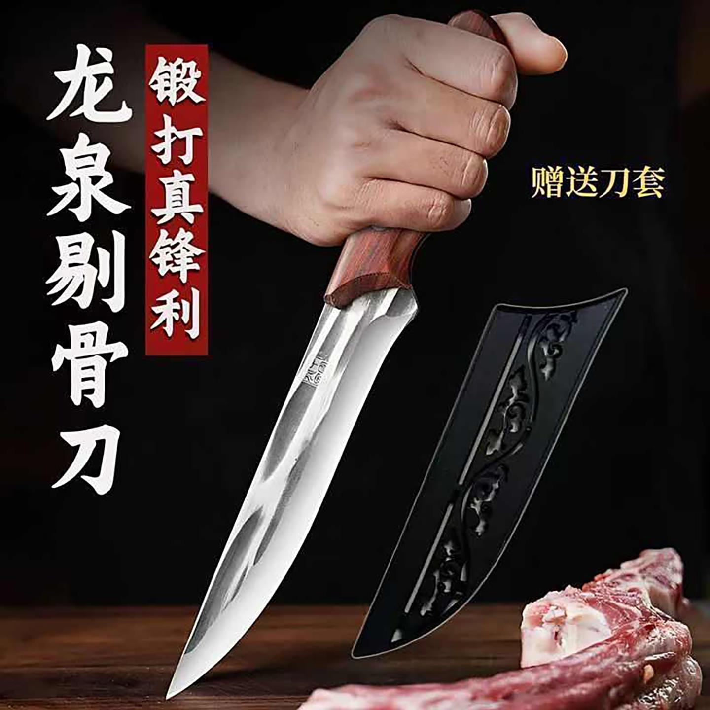 锻打龙泉剔骨刀家用高硬度卖肉杀猪牛羊锋利屠宰专用屠夫分割刀具