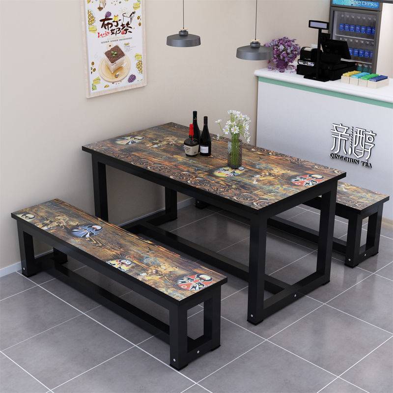 简约现代家用餐桌4人位饭店钢木快餐桌椅6人位多人餐吃饭桌子组合