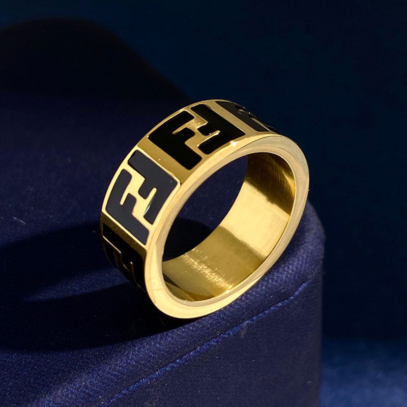 双F字母戒指女钛钢材质不掉色不过敏简约百搭男女通用滴釉食指环