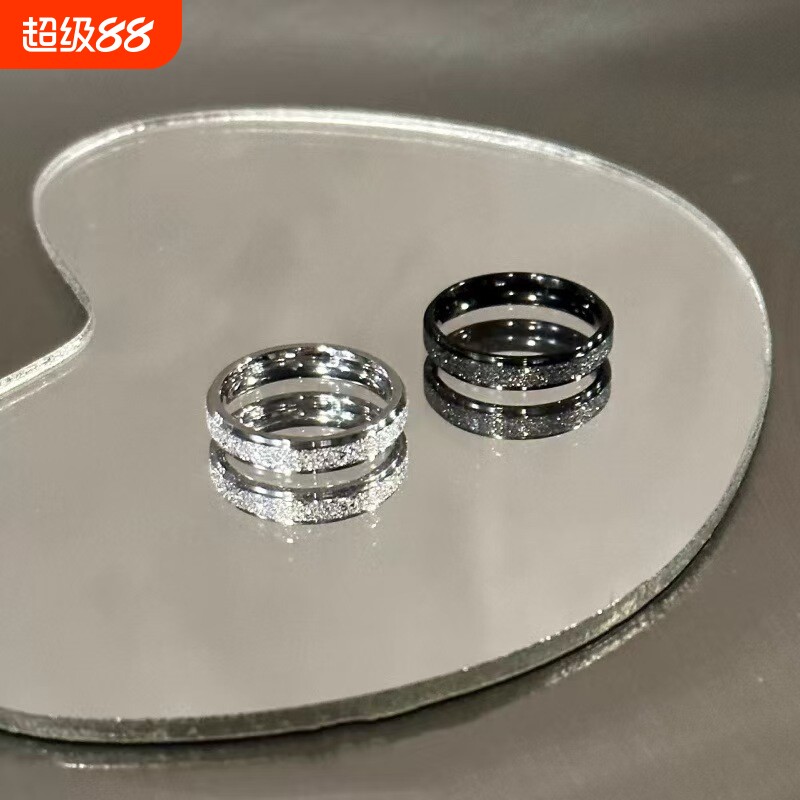 钛钢戒指 黑色磨砂戒指男士指环ins不掉色高级感小众时尚潮流百搭