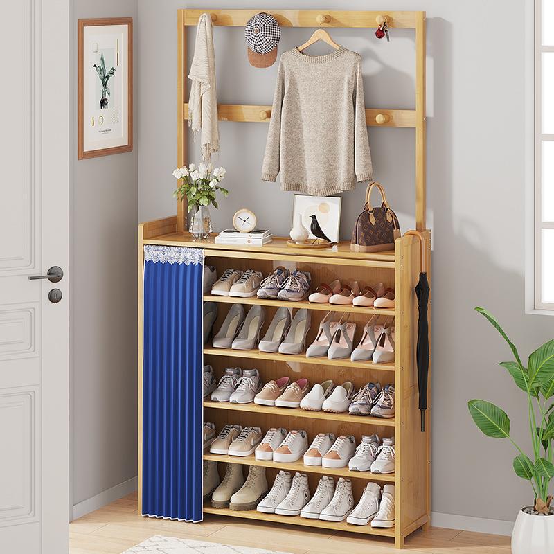 门厅衣帽架楠竹鞋架衣架一体组合鞋架子家用经济型入户门口置物架
