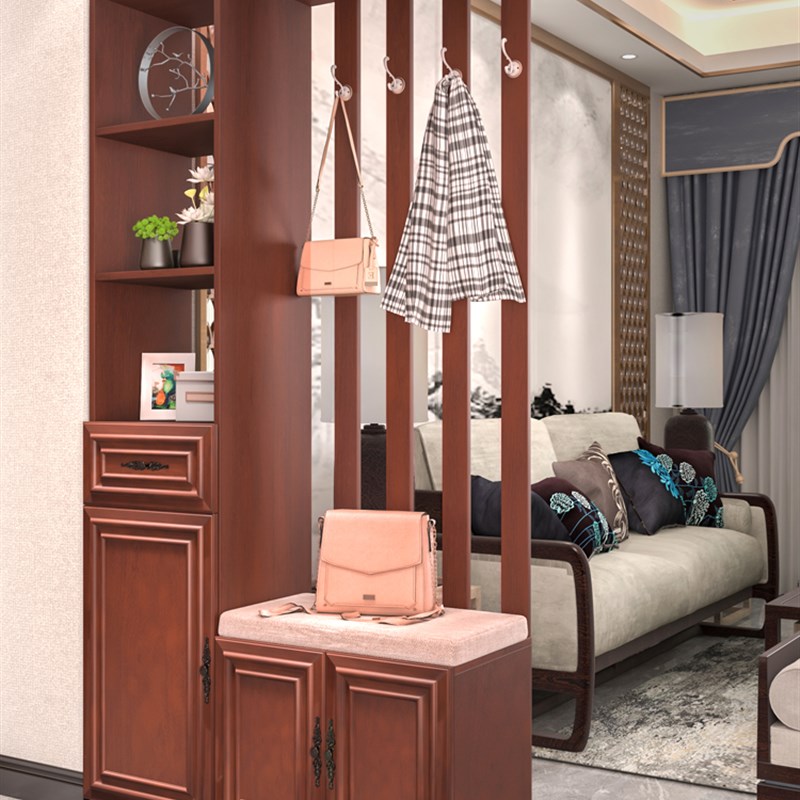 新中式轻奢玄关柜进门屏风鞋柜一体入户门厅衣帽架客厅玄幻隔断柜
