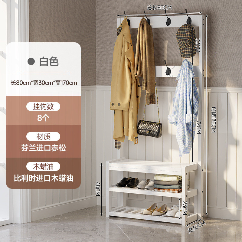 实木挂衣架换鞋凳玄关进门厅衣帽架落地衣架卧室落地鞋架鞋柜一体