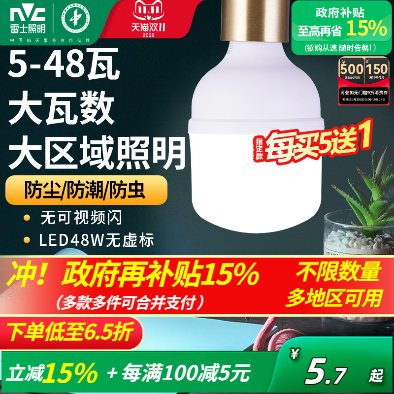 雷士照明led球泡灯E27大螺口球泡夜市摆摊厂房工矿灯大功率灯泡