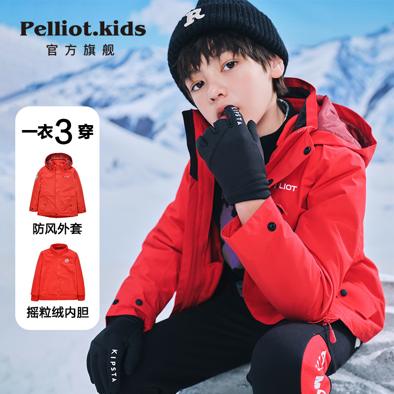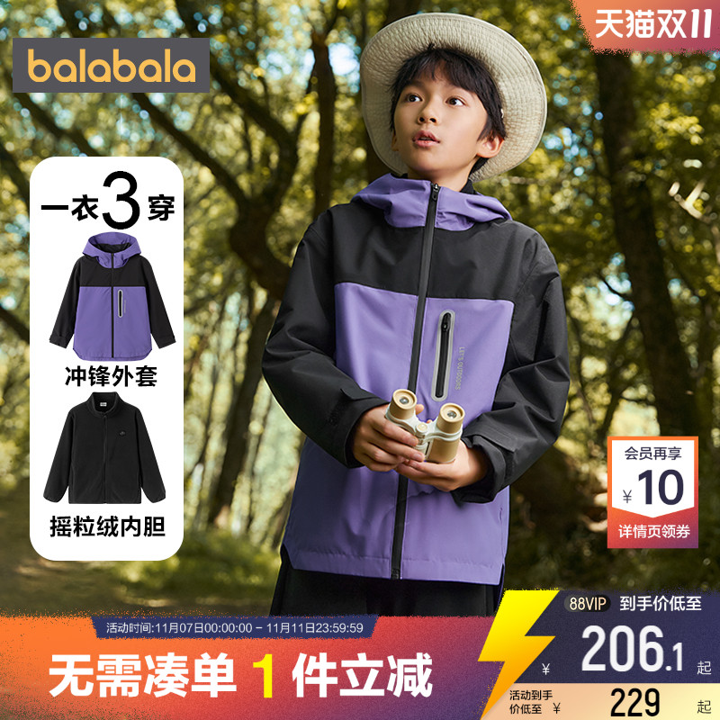 巴拉线上儿童冲锋衣男童户外三合一加绒中大童可拆卸外套2025秋冬