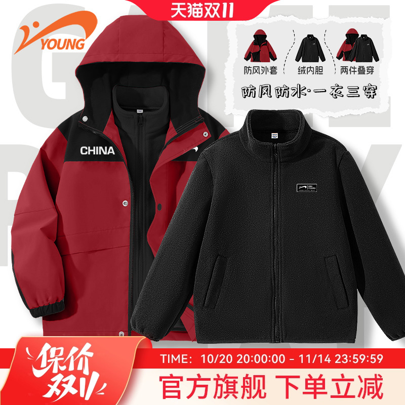 贵人鸟童装儿童冲锋衣男童三合一加绒外套秋冬款大童户外耐磨冬装