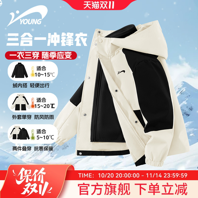 贵人鸟童装儿童冲锋衣男童三合一外套可拆卸男孩防水风衣2025新款
