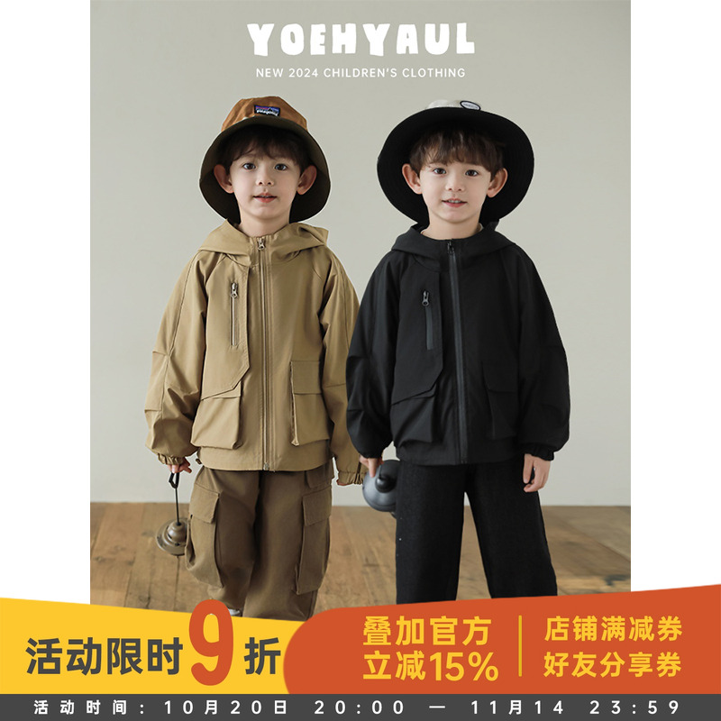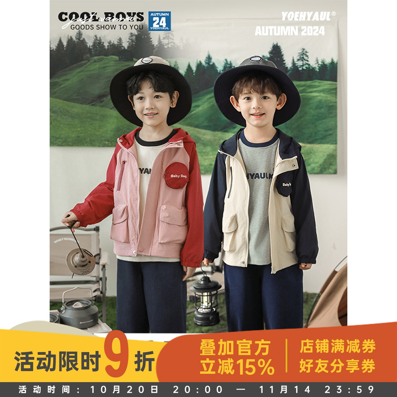 幼悠童装儿童冲锋衣男童外套秋装2025新款男孩户外宽松连帽上衣潮