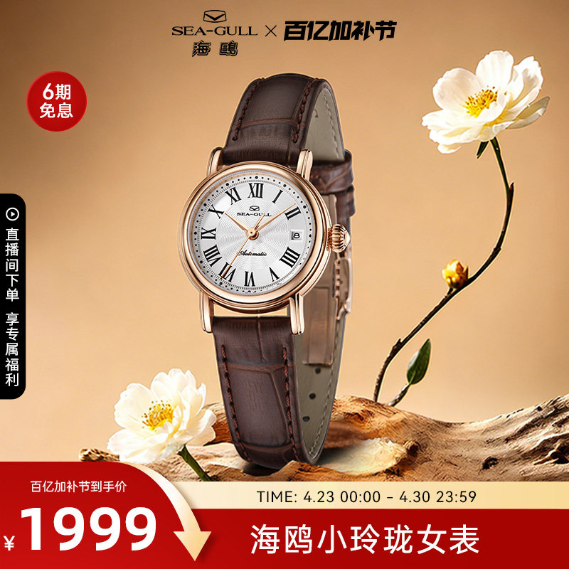 海鸥手表复古小玲珑腕表皮带女款机械表女士手表1046L送女生礼物