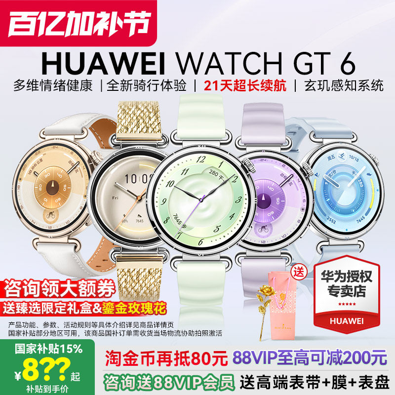 【咨询更优惠】华为手表WATCH GT6女款运动智能商务手表女士情人节礼物送老婆时尚腕表女官方原装正品旗舰