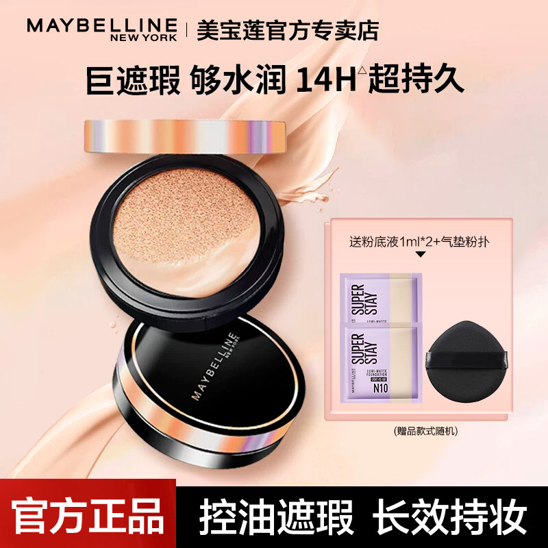 美宝莲巨持妆无瑕轻垫粉底液superstay气垫bb霜14g遮瑕控油不脱妆