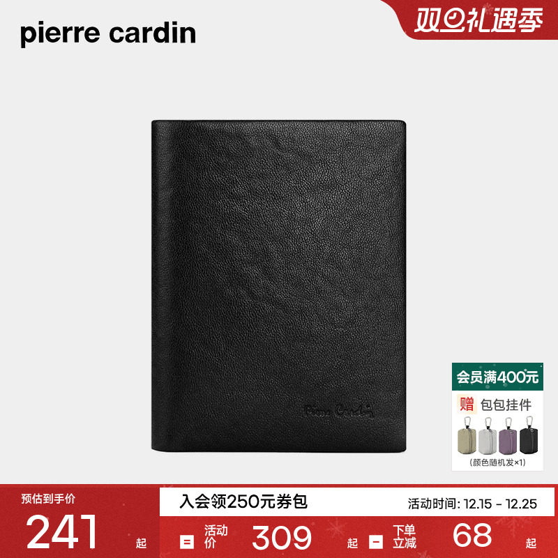 【真皮】皮尔卡丹竖版男士钱包短款卡包简约男式钱夹牛皮男生皮夹