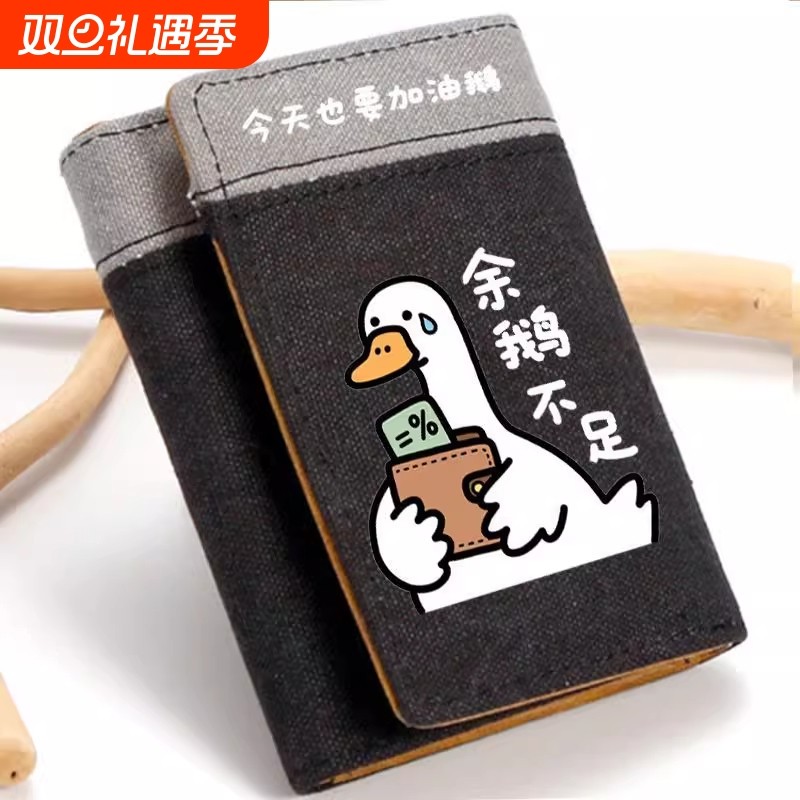 今天也要加油鹅钱包男竖款时尚学生少年卡通动漫多卡位卡包零钱包