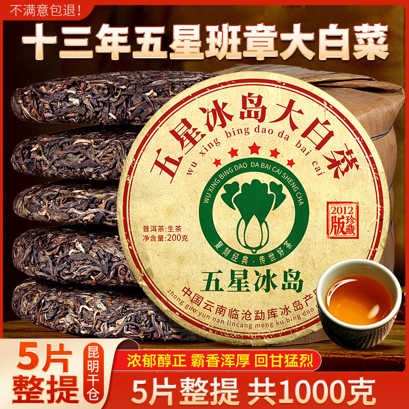 五星冰岛大白菜普洱茶生茶饼陈年生普洱云南冰岛老生茶生普洱茶叶