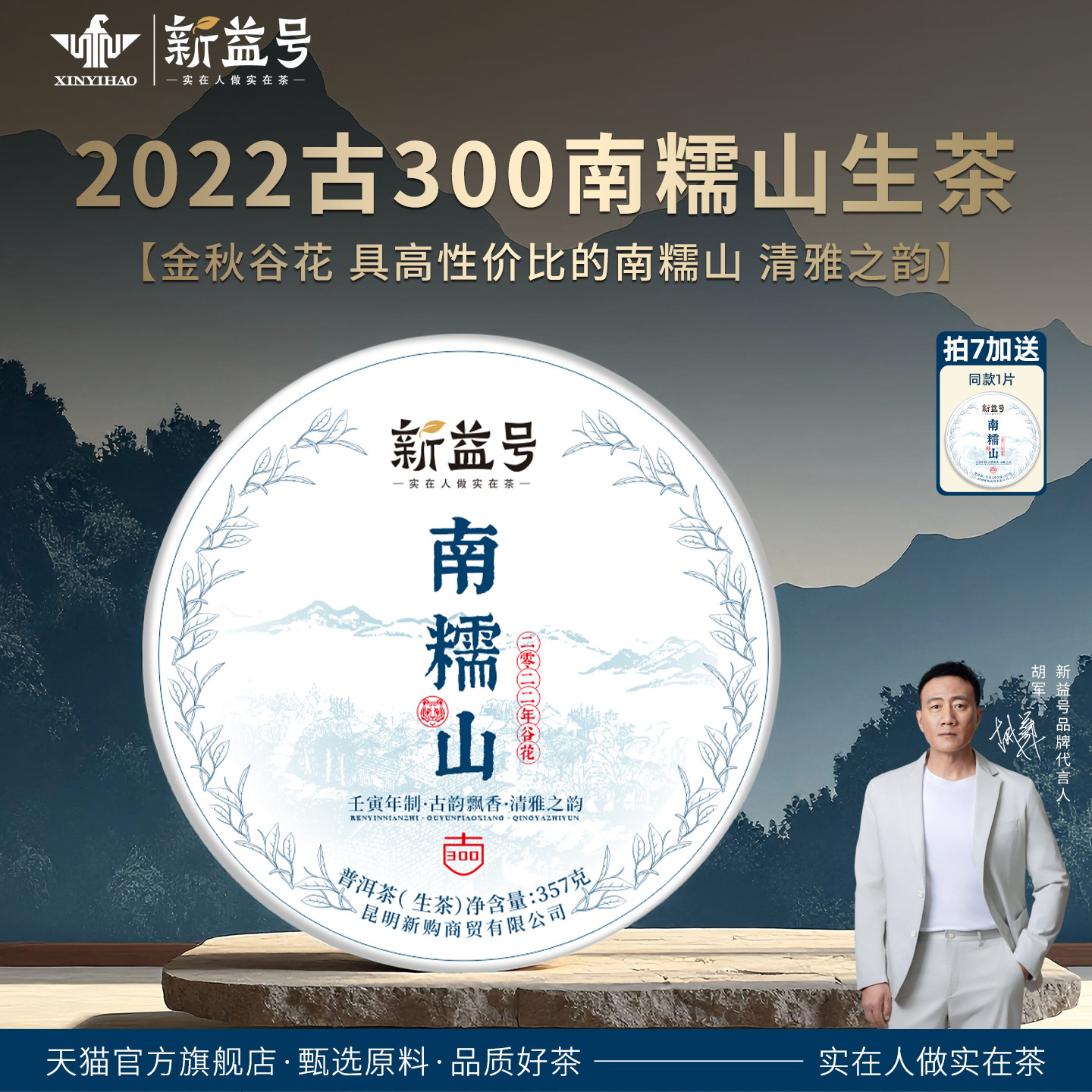 新益号古300南糯山谷花茶普洱茶生茶饼云南七子饼357g生普洱茶叶