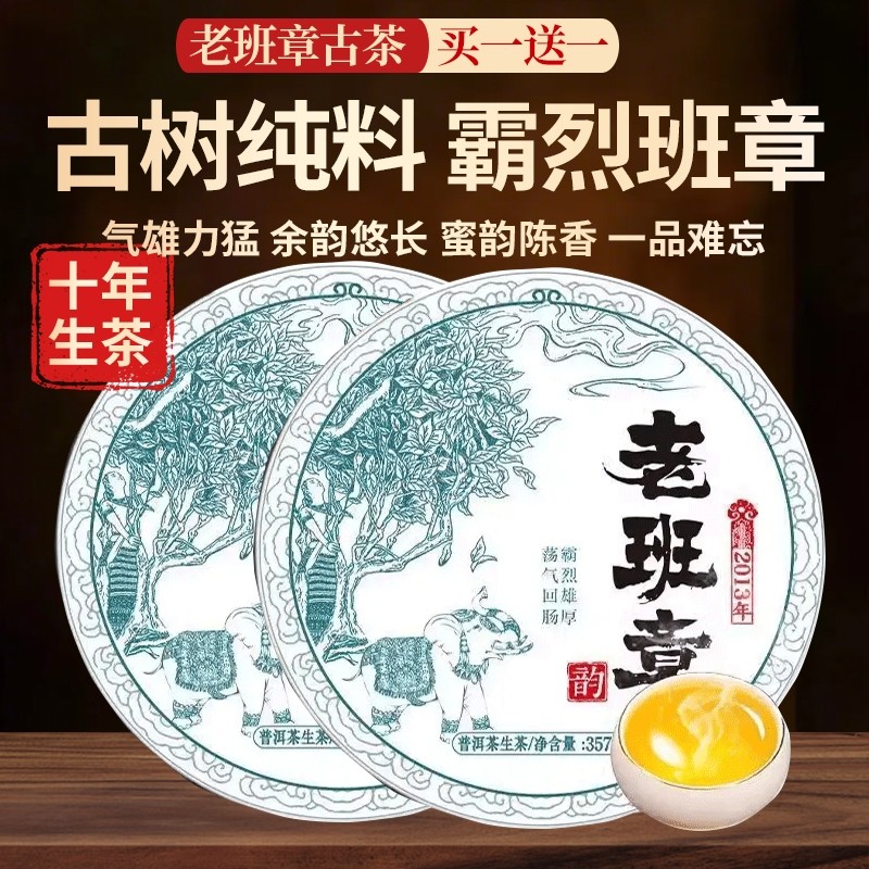 老班章古树普洱茶生茶饼十年以上老生茶云南七子饼生普洱茶叶年份