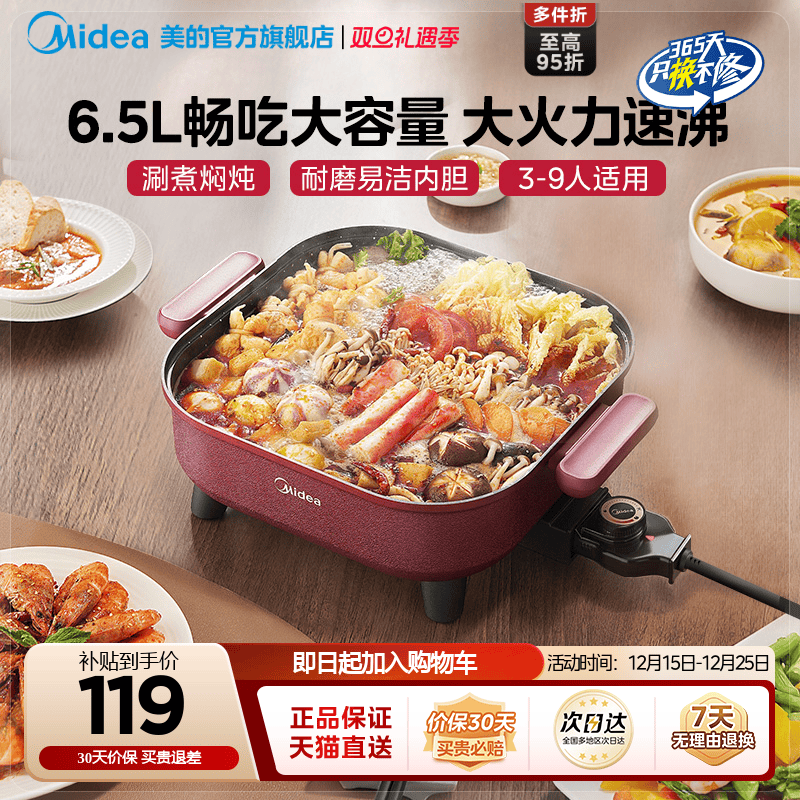 美的电火锅家用多功能一体锅大容量电炒锅电热火锅电锅不粘料理机