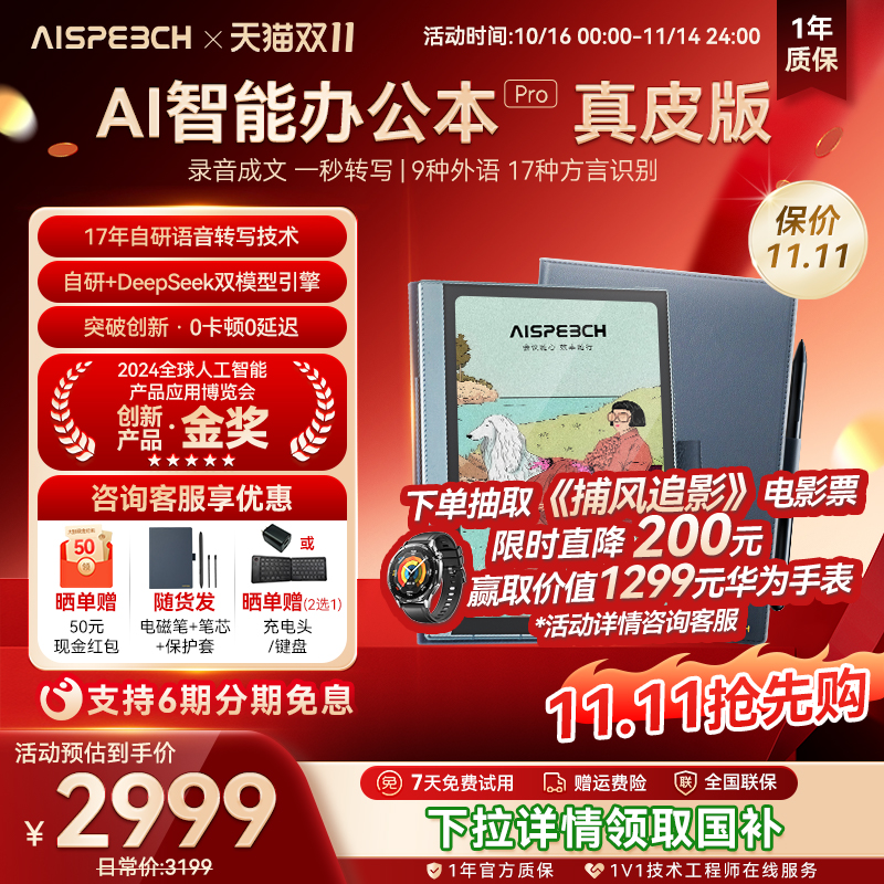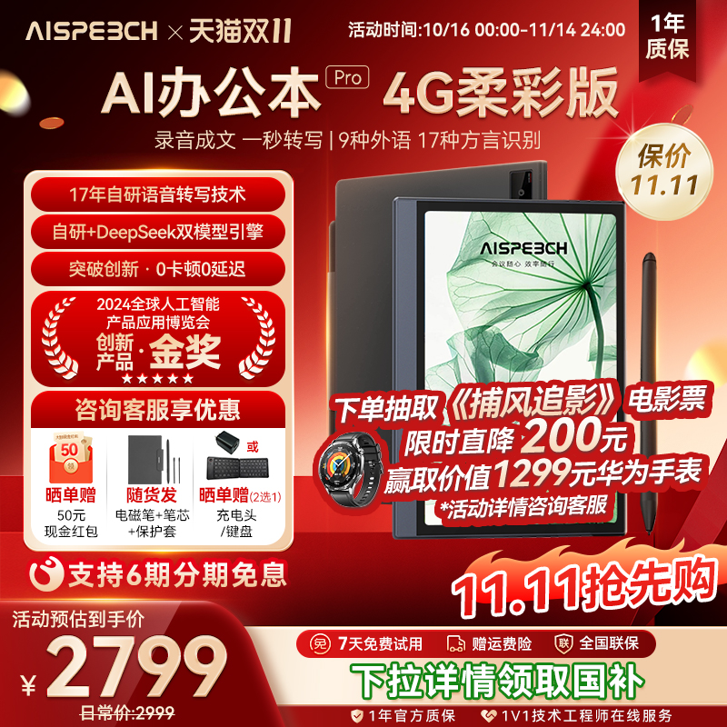 【新国补立减15%】思必驰AI办公本pro智能会议记录语音翻译电子笔记本手写笔记本柔彩屏护眼电纸书读书阅读器