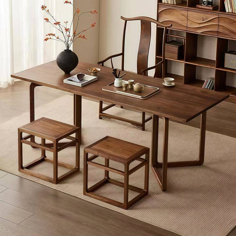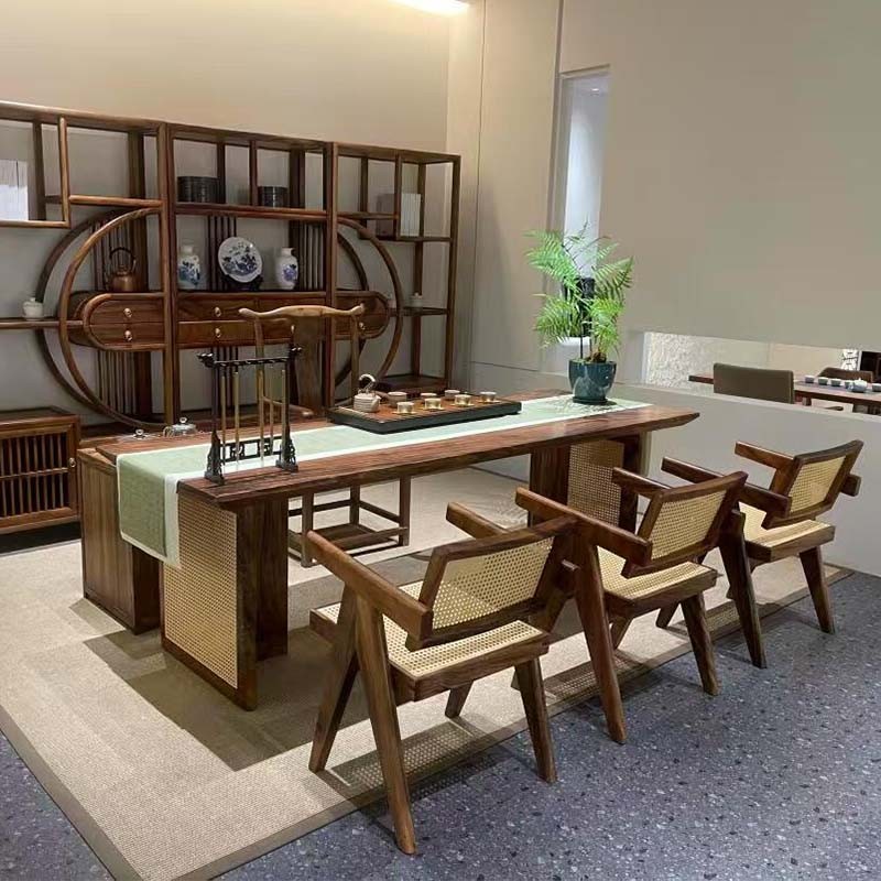 新中式茶桌椅组合北美胡桃木家用办公茶台禅意茶室泡茶桌一桌五椅