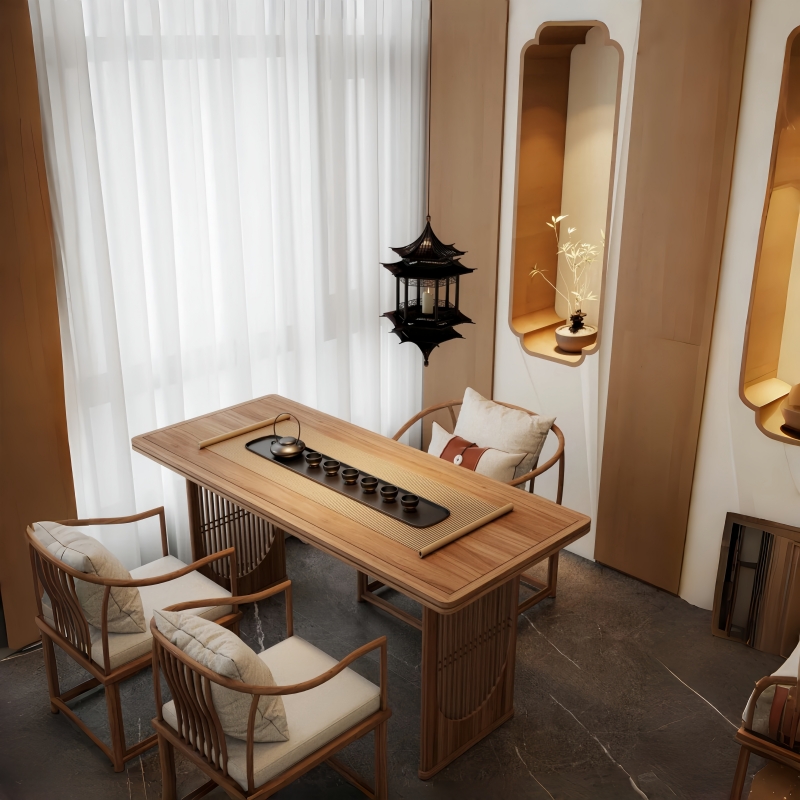 需定制新中式茶桌椅组合实木茶台禅意茶室泡茶桌办公室家用阳台小
