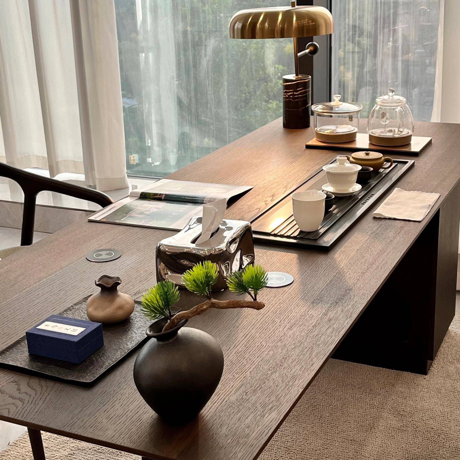 新中式茶桌椅组合办公室简约大板茶台家用阳台高端茶桌书桌一体桌