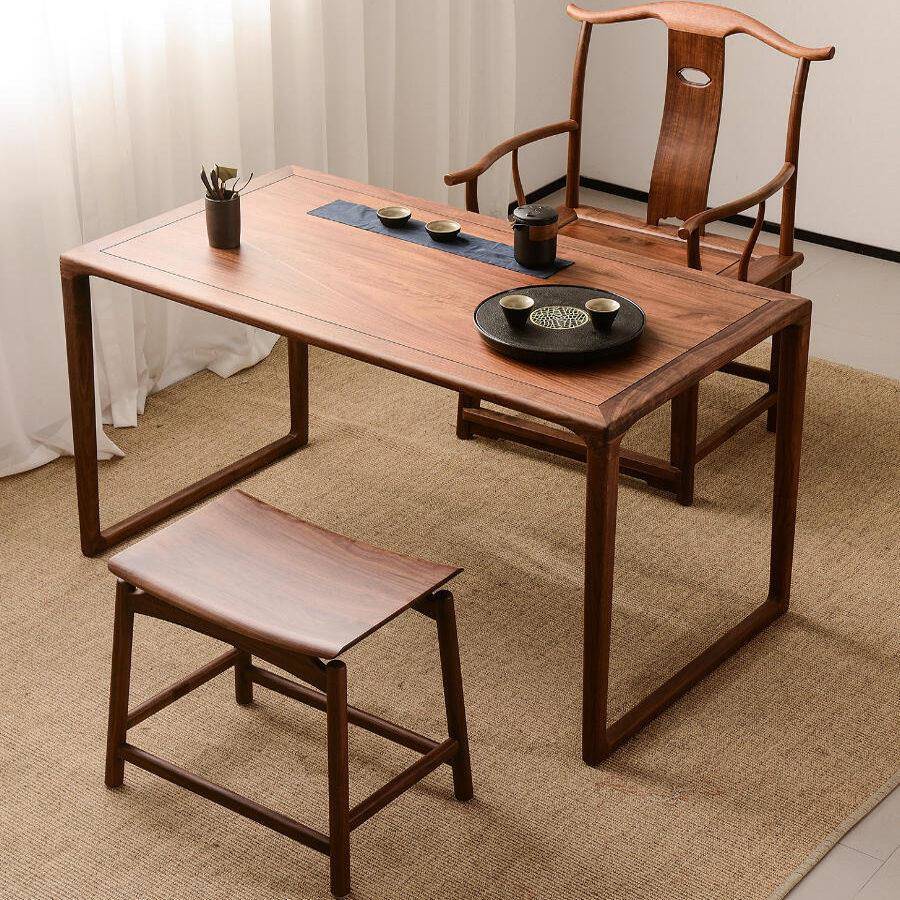 新中式茶桌椅组合北美黑胡桃木家用洽谈桌禅意功夫泡茶桌茶台定制