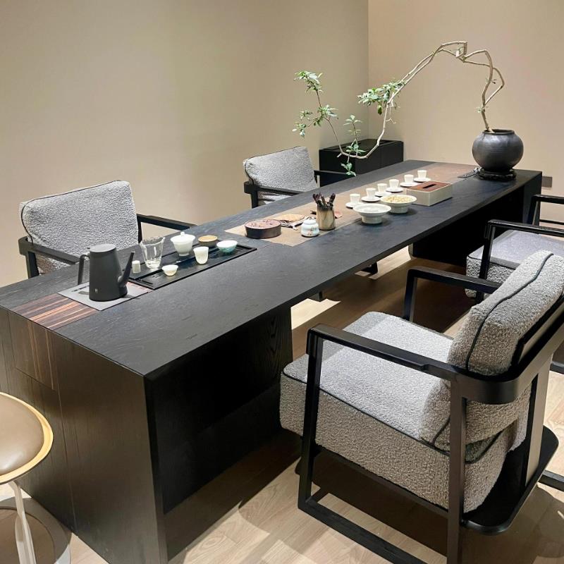 新中式茶桌椅组合实木岩板泡茶桌商业办公室黑色禅意现代简约茶台