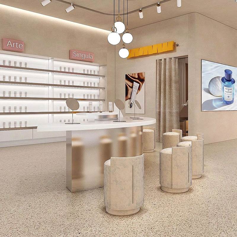 定制化妆品柜子展示柜美容院产品置物架柜台专柜货架中岛柜陈列架