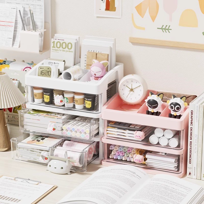 桌面收纳盒学生文具手账神器箱化妆品柜办公宿舍书桌抽屉式置物架