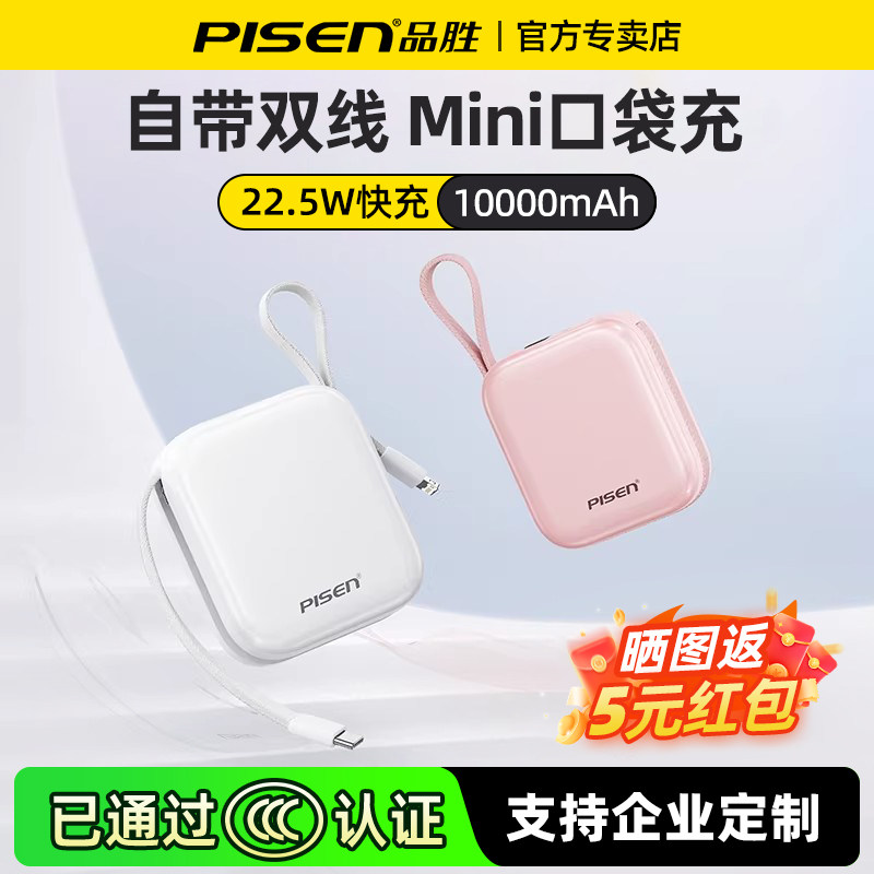 【新3C认证】品胜充电宝自带双线22.5W快充大容量10000毫安适用苹果华为小米安卓通用移动电源logo定制礼品