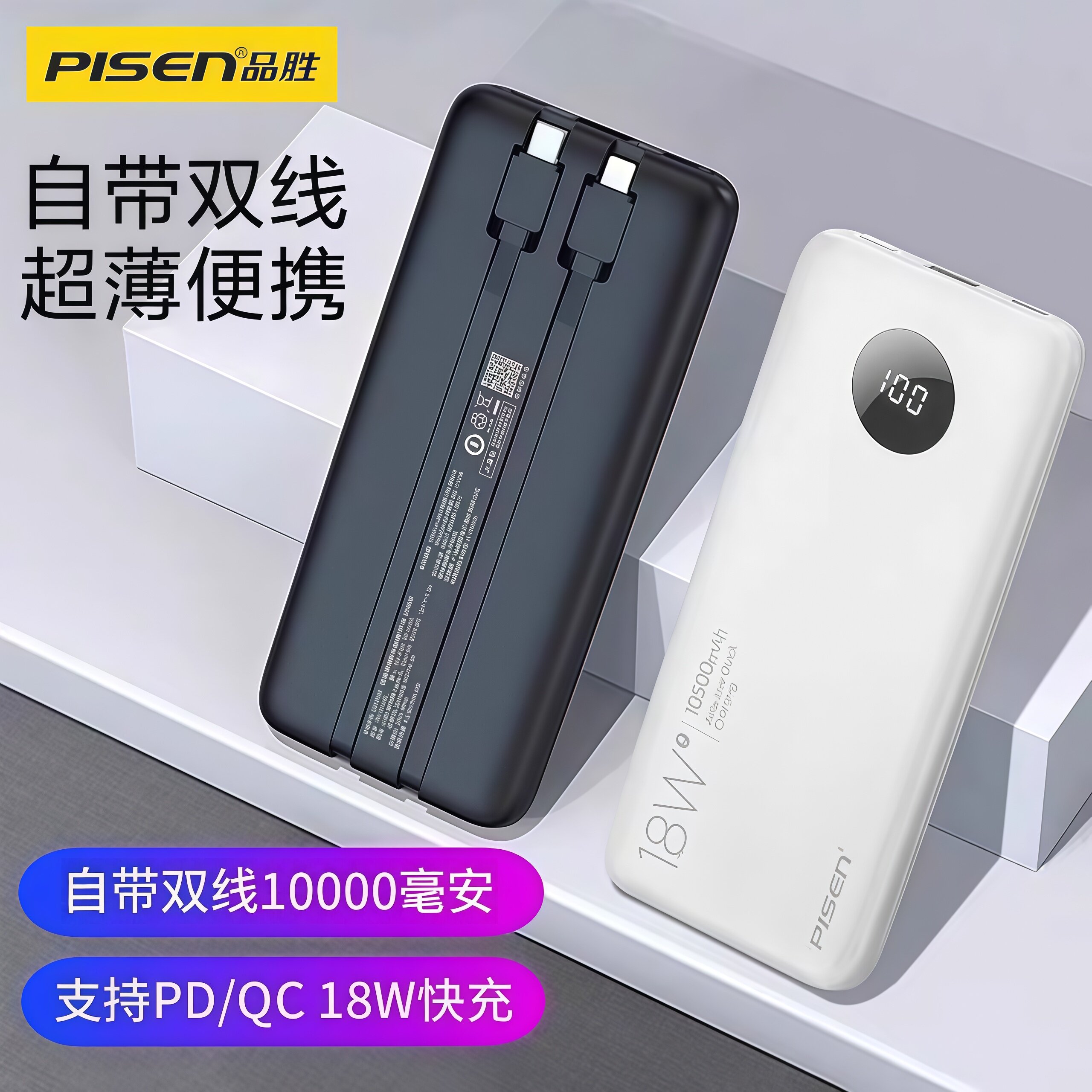 【充电宝3C认证丨可上飞机】品胜充电宝2025新款快充大容量超薄自带线政府补贴移动电源适用华为小米苹果