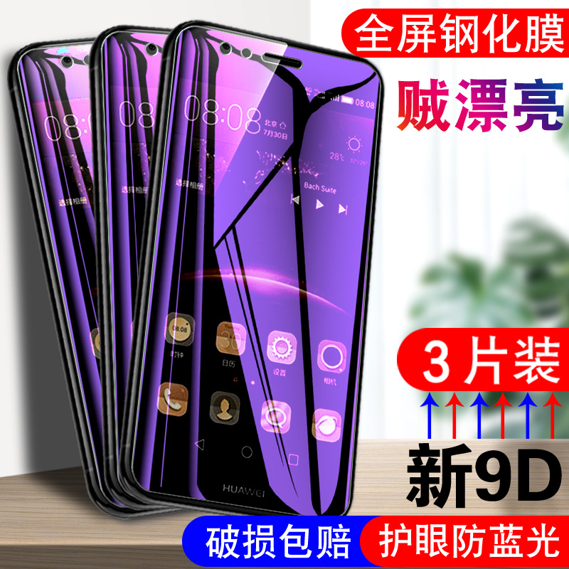 适用于华为麦芒5钢化膜全屏覆盖护眼抗蓝光麦芒4高清防指纹无白边G7/G9plus软边保护贴膜