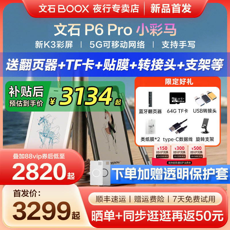 [支持国补 送原装皮套]文石BOOX P6 Pro小彩马彩色小白马墨水屏电子阅读器电纸书护眼口袋阅览器水墨屏手机款